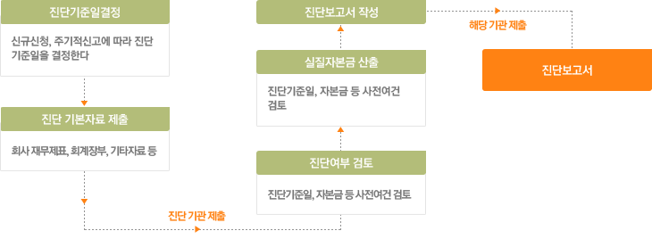 건설업 등 등록시 자본금기준 등 적격여부를 검토하거나 주기적 신고시 잔본금기준 적격 여부의 확인을 하거나 또는 자본금 변경히 확인을 위하여 공인회계사 등 전문경영진단기관에 의뢰하여 재무관리상태를 진단하는 것을 말한다.
